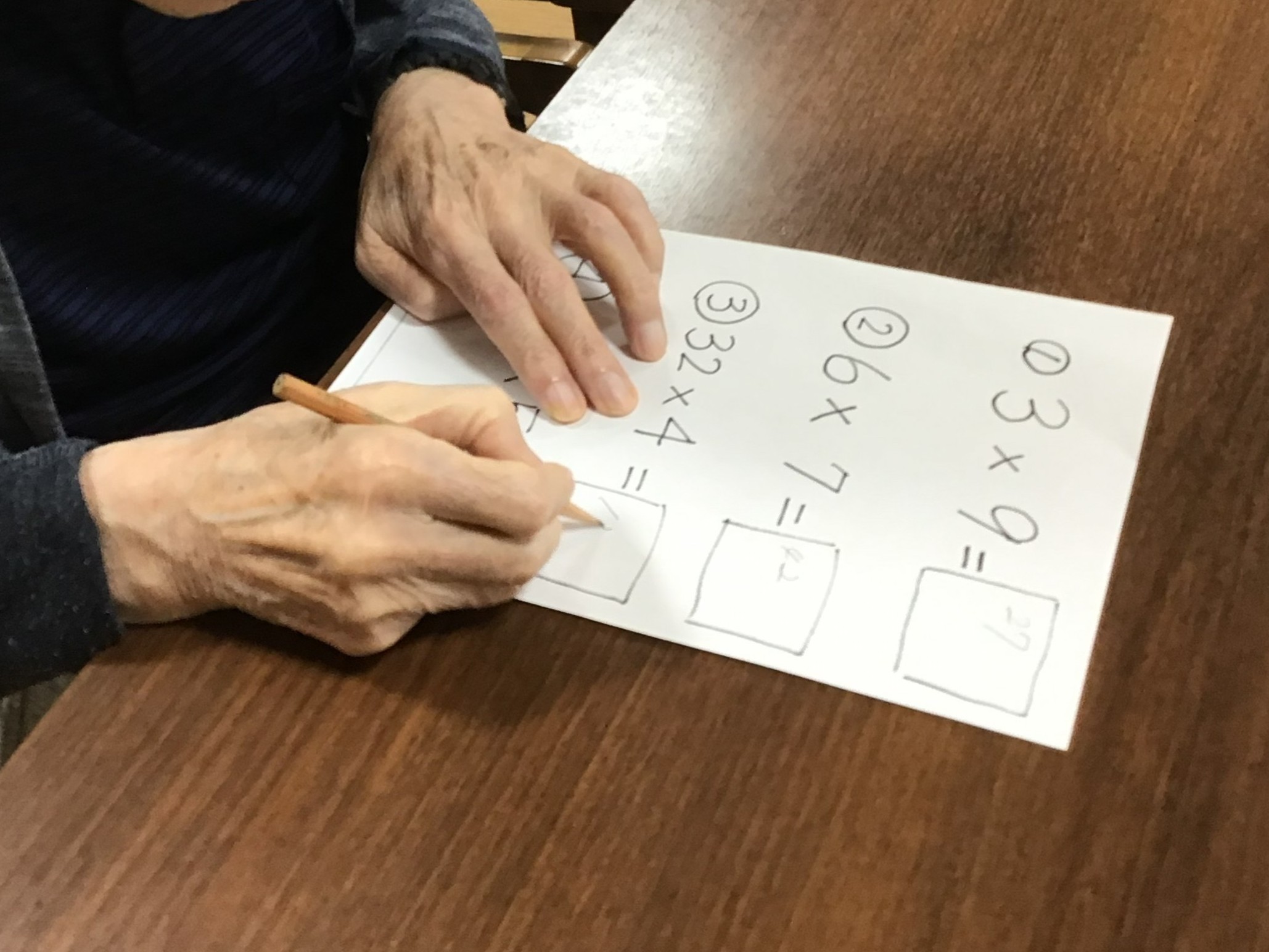 計算や音読、書き取りなど、入居者様の状態に合わせた個別プログラムを提供しています。お一人おひとりのペースや得意なことにじっくりと取り組み、楽しみながら脳を健やかに活性化する習慣を大切にしています。