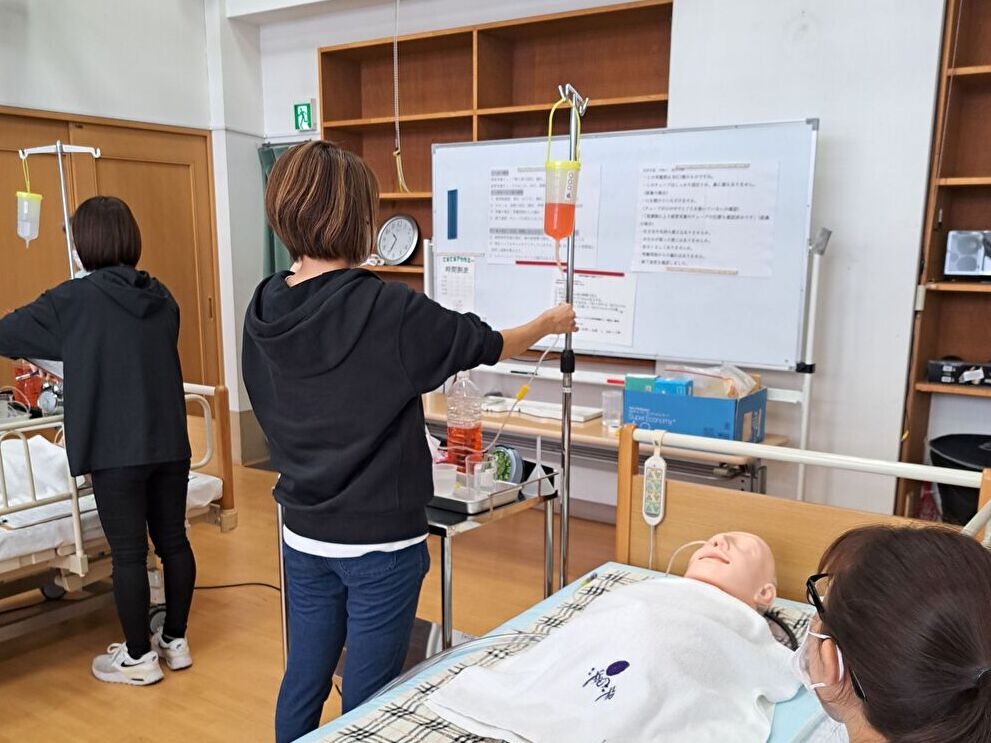 シミュレーターを使い、たんの吸引や経管栄養などの技術を学ぶことができます。不安の多い内容も、理解できるまで丁寧に指導します。